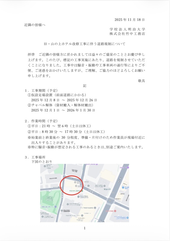 (詰所:25日は10番地新駿河台ビル1階エントランス、26日は10番地バ