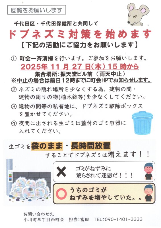 ※27日ゴミの処分にご協力いただいた方には、クマネズミ捕獲シートをお渡しします。