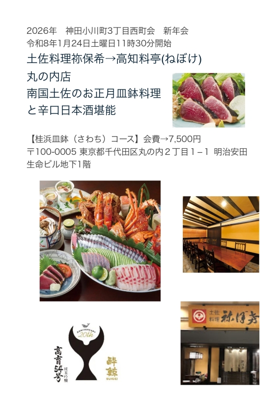 町会員の皆様が集う新年昼食会を下記のように企画いたしました!